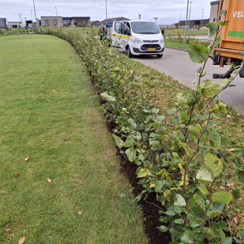 Har du en høj eller bred hæk langs dit fortov? Så er det ideelt med en frontmonteret hækkeklipper, som er monteret på en lille minilæsser, så vi kan køre langs dit fortov og klippe hækken.